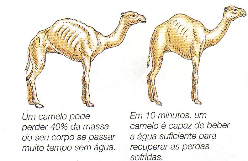 Camelos podem tomar 200 litros de água de uma só vez.